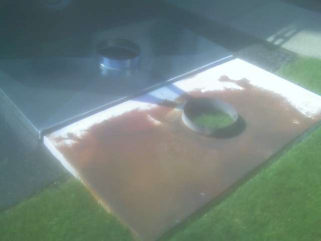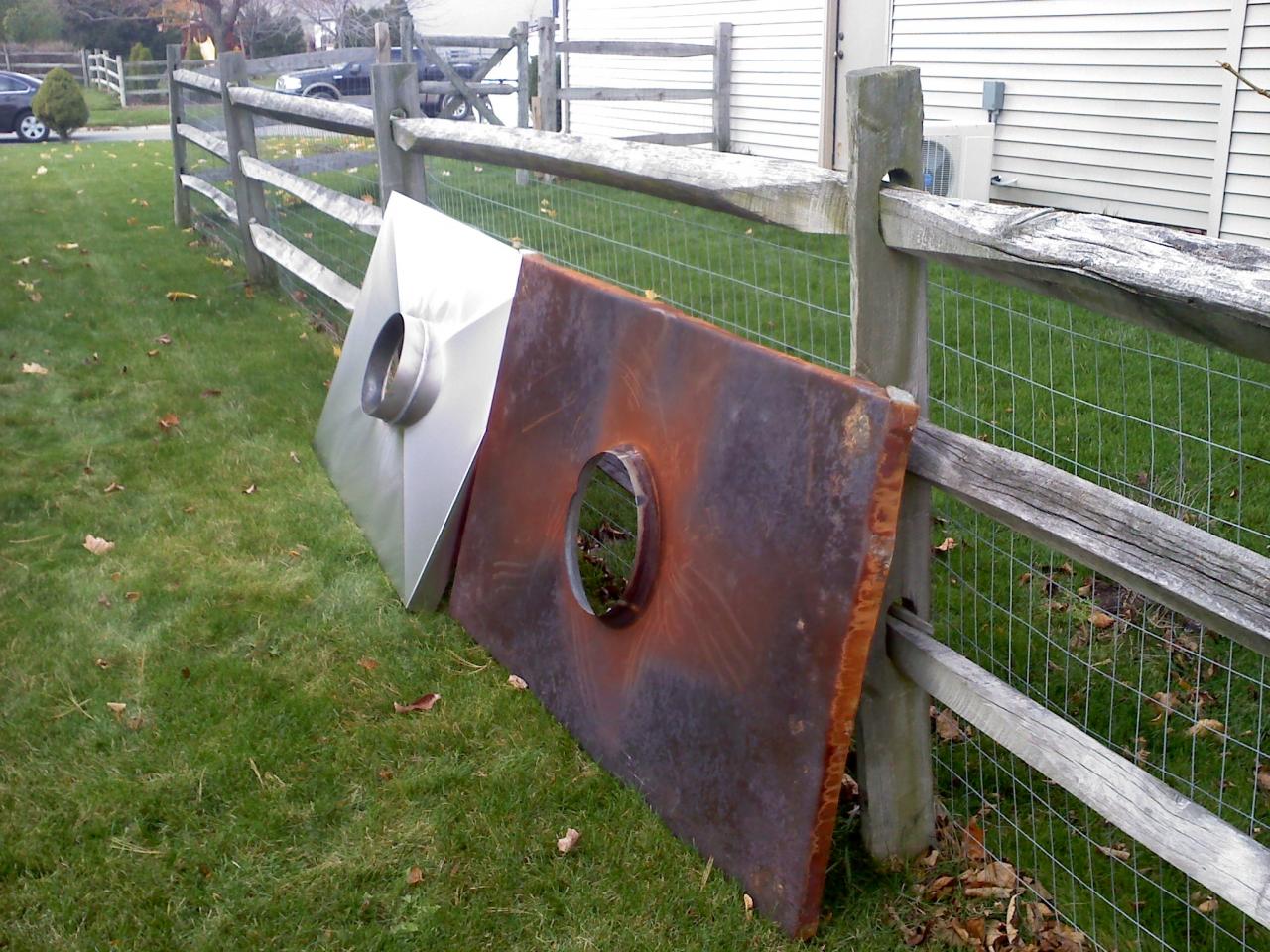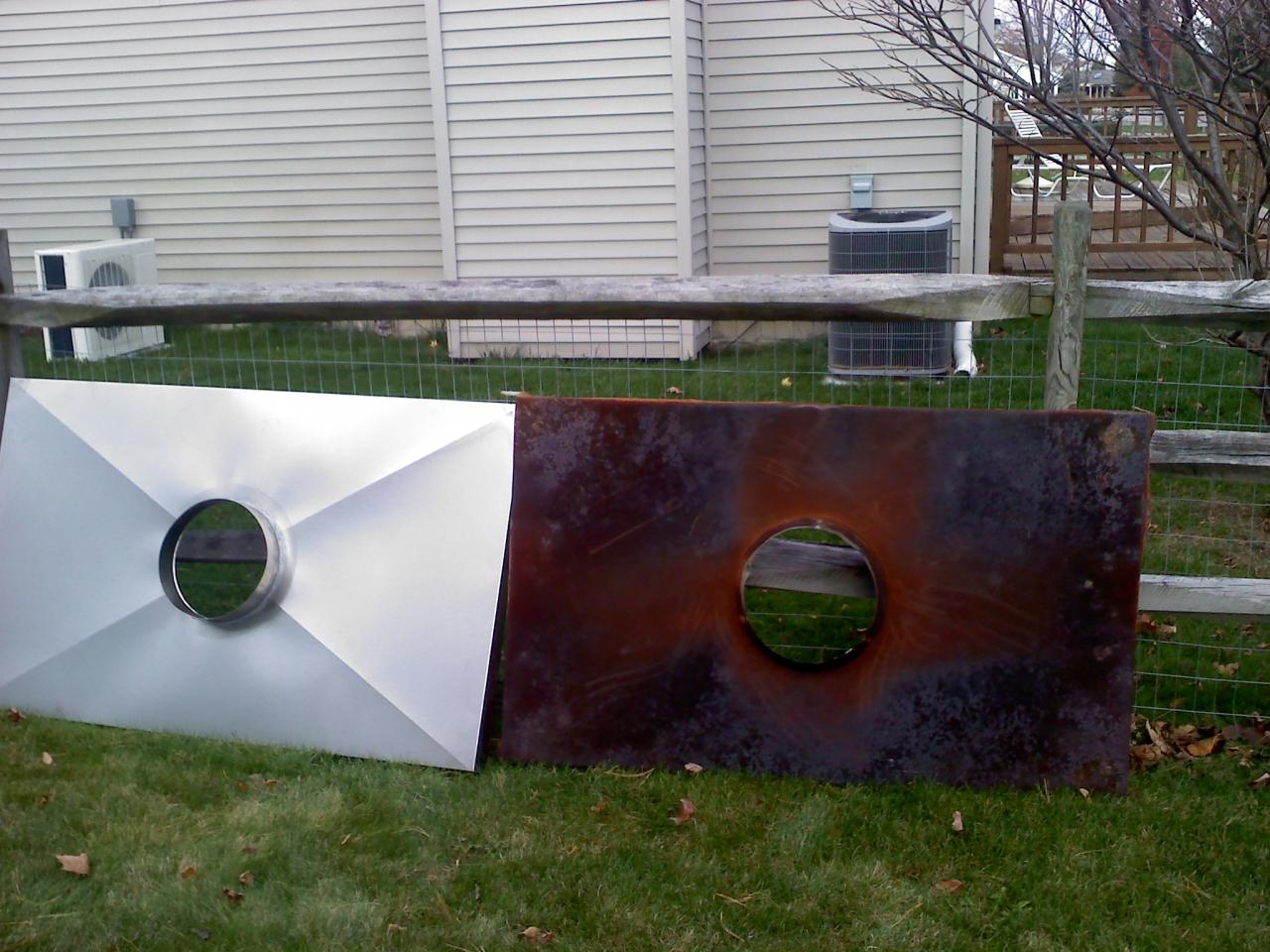 The chase pan we provide to replace the one that is rusting out are the heaviest metals in the industry. The pans are measured and all seams are welded not just caulked. The collars are incresed in height to 3 inches, replacing the 1 1/2 " collars on the old ones. The pans are broken to tapper off the water.